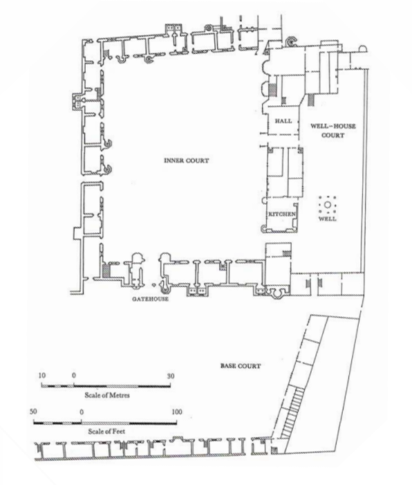 Adapted 1567 plan of the castle, showing the inner, base and well courts
