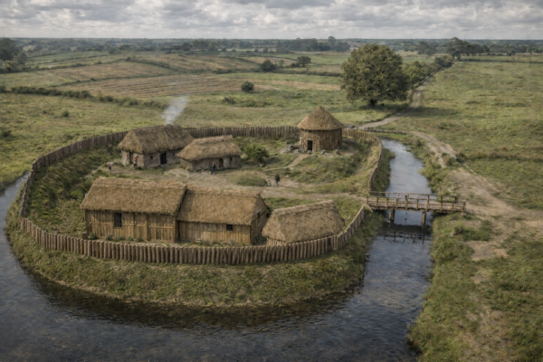 A speculative reconstruction of the site in the early 12th century